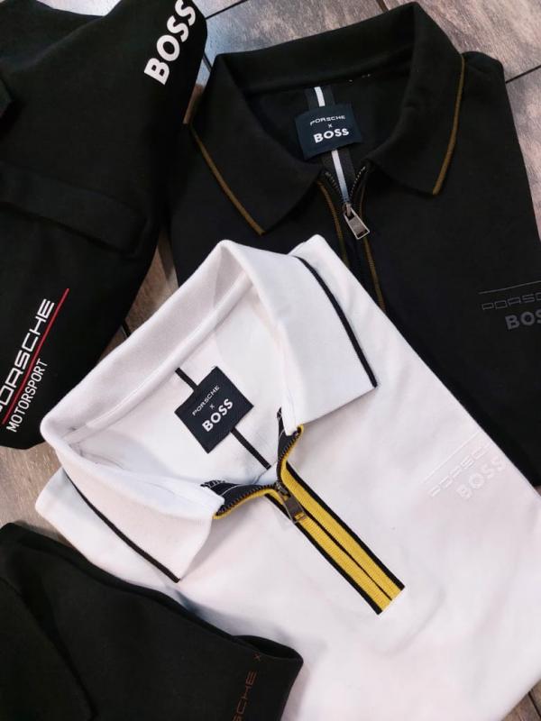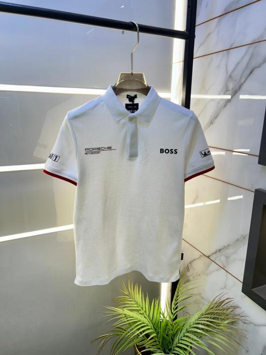 Boss x Porsche Edition White Collar Neck Premium Polo T-shirt F3430-W2