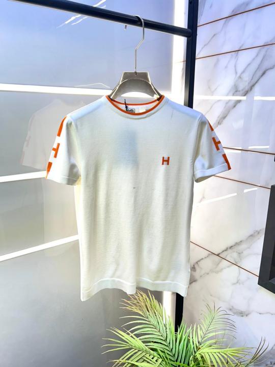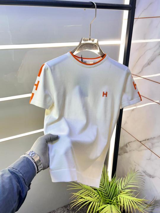 Home T-Shirts Hermes Logo Imported Off-White knitted Polo Super Premium Round Neck T-shirt F3528-OF